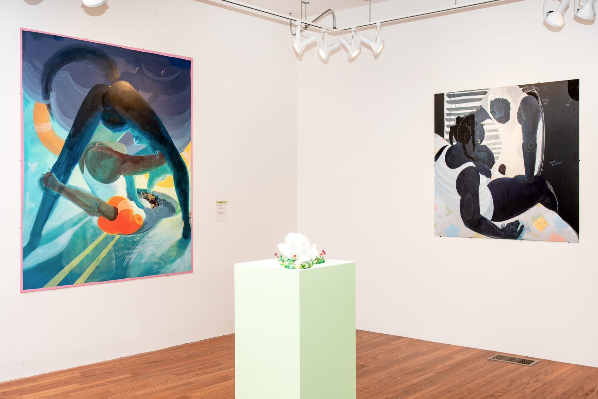 Seeing “The Consistency of a Sunset” at Abigail Ogilvy was my first time visiting a gallery since the beginning of the pandemic, and the works by Toronto-based painter Erin Loree and Charlotte-based fiber artist Katrina Sánchez felt completely divine.