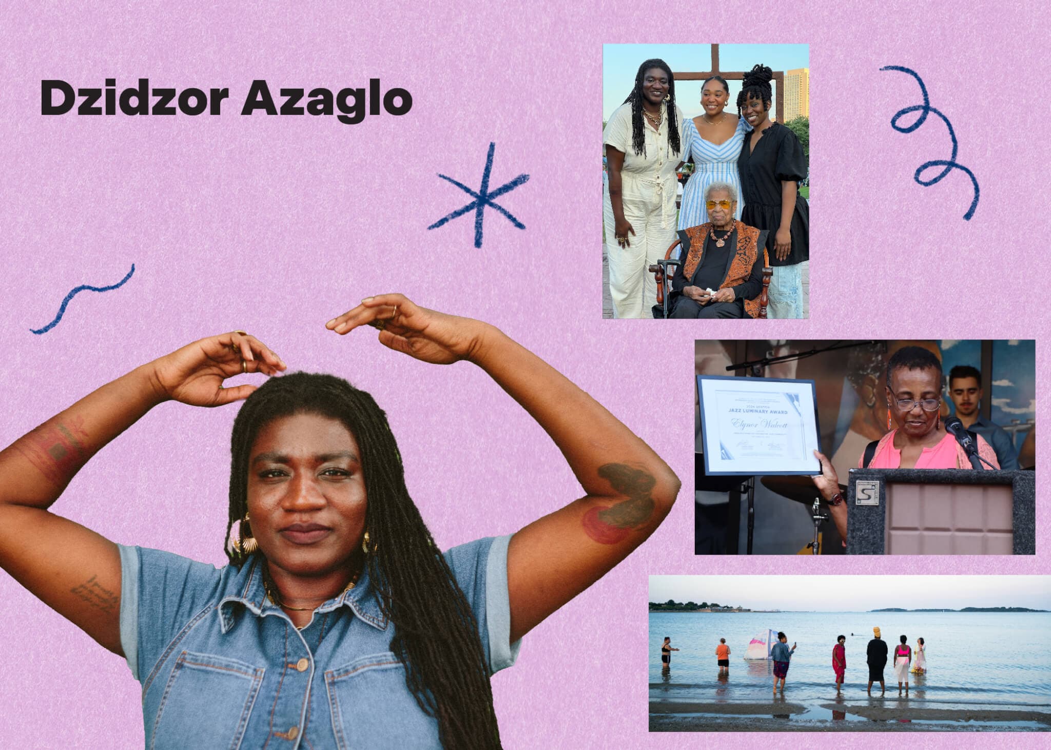 Dzidzor (pronounced Jee-Joh) Azaglo is a Ga-Ewe folklore performing artist, writer, and curator. She often explores how oppressed bodies can release internalized oppression in the mind and body through rest, an active practice of stillness, and a lifelong journey to living. Dzidzor is currently working on a project called, ‘Wilderness’, an experimental performance piece that explores oral and written archives to understand what it means be black, living, and woman in relation to God and the teachings of religion to black women. Dzidzor is currently a masters candidate at Boston University for a Masters in Divinity and the community liaison for a community archiving Mellon-funded project, called the Reckonings Project. Dzidzor, in partnership with Crystal Bi, runs a series of events called Department of Public Imagination. Dzidzor is currently working on a project that is set to release in January 2025.