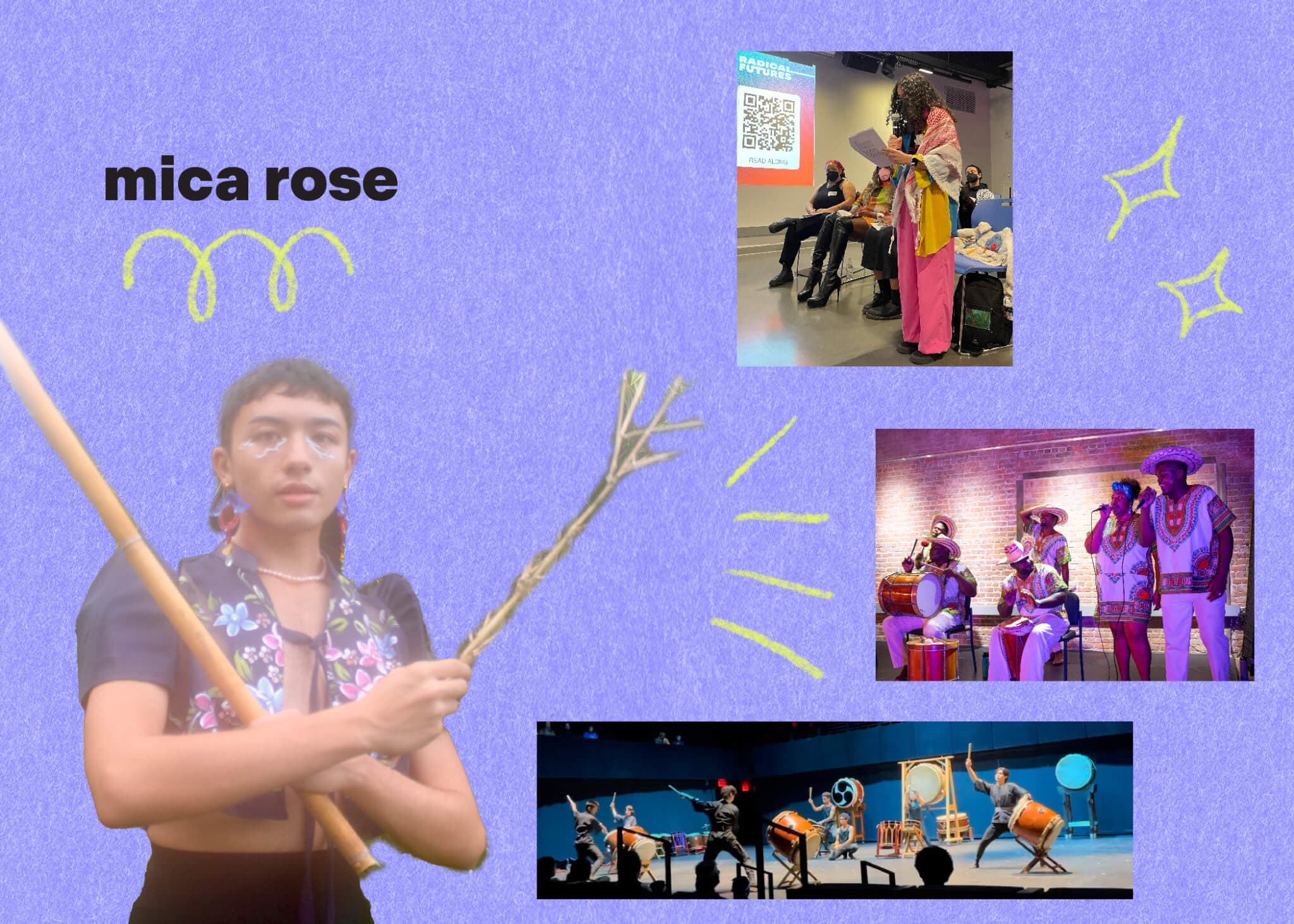 mica rose is a gemini gust of slumber-party who trains in ancestral medicine. Their teachers include Lola Nellie & Luzon, Manong Wayne in pangalay, Márquez Rhyne in story circles, and sensei Karen Young in taiko. Chosen and blood families shape their devotion to international solidarity. As an artist, a member of Liyang Network, and co-director of Emergence at Arts Connect International, mica organizes with grassroots communities here in Boston and in the Philippines for land, water, and self-determination.