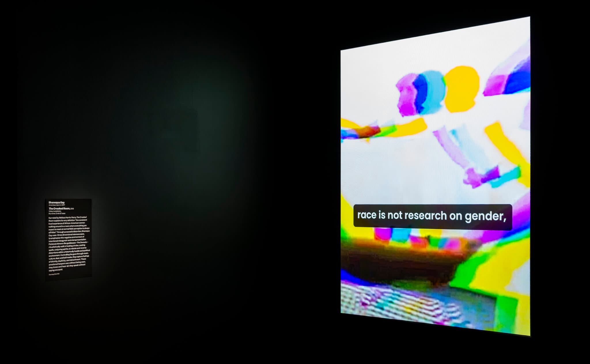 Shanequa Gay, The Crooked Room, installation view, 2018. Video exhibition, 2:57. Installation view, “Four Womxn: New Musings on Blackness,” on view at the Museum of Fine Arts, Boston, through November 17, 2024. © Shanequa Gay. Photo courtesy of Museum of Fine Arts, Boston.