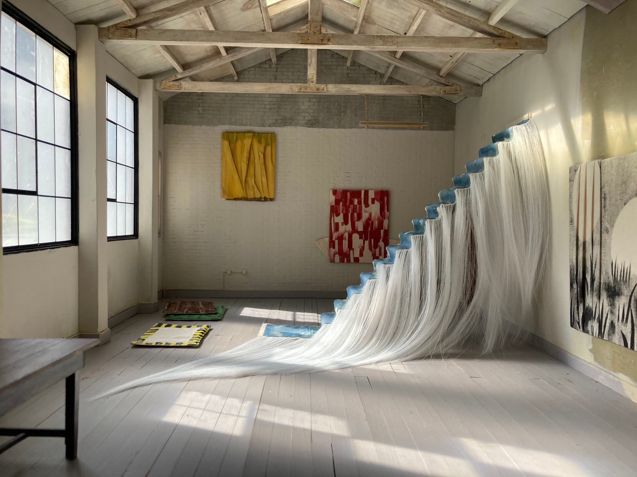 EH: Yeah. It definitely was kind of a dream space, but also a realistic dream—maybe something that I could have afforded to have in Boston say fifteen to twenty years ago. I started building it in March of 2018, I think. I was riding my bike through the rain to get to my window-less, freezing-cold studio in Jamaica Plain, and was imagining just having windows would be nice. So a space with big windows and high ceilings was kind of the dream.