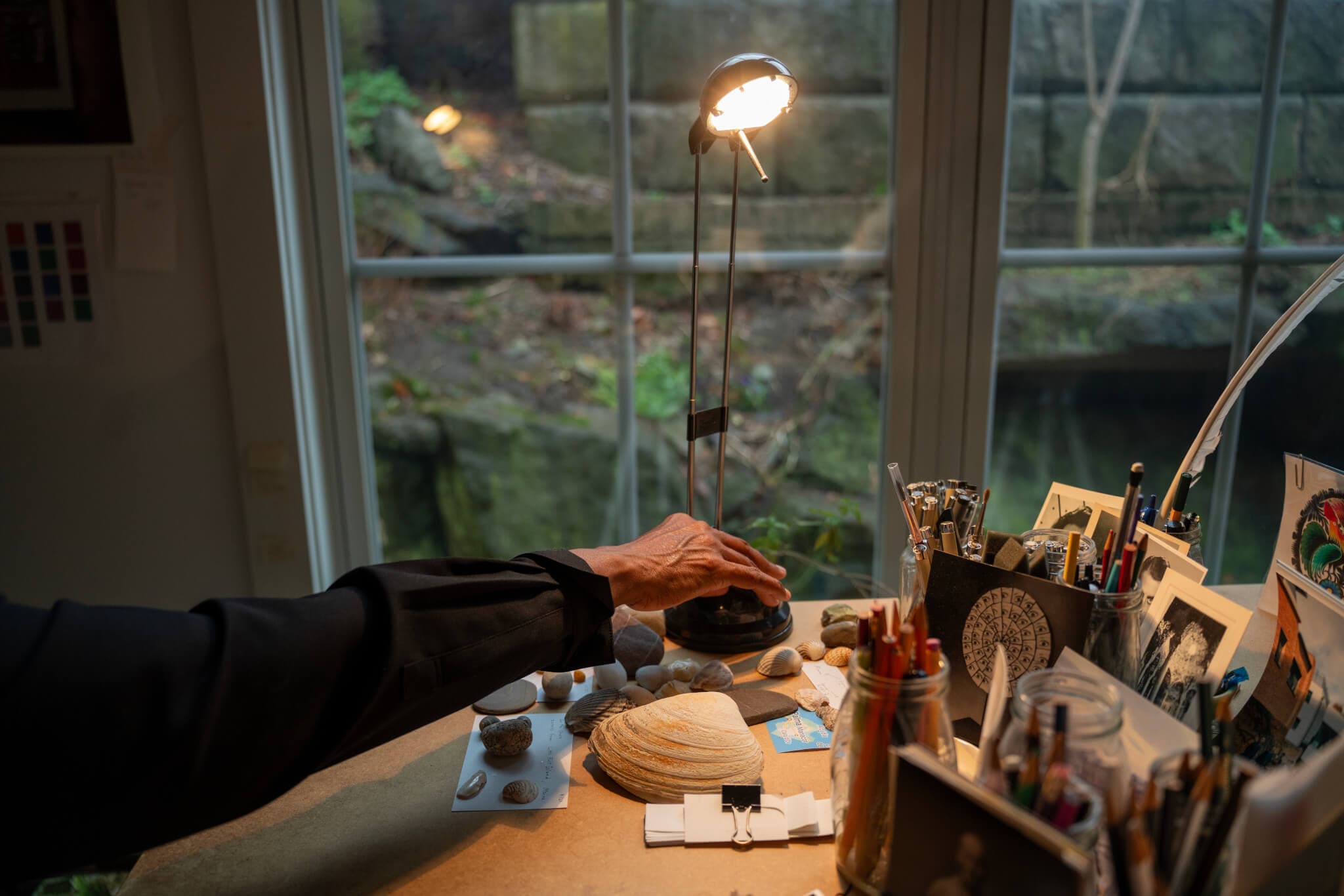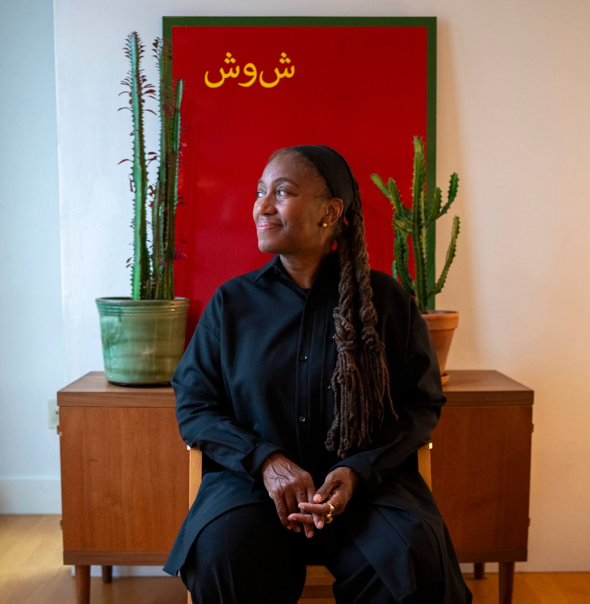Renée Green inside her studio, Somerville, MA, 2025. Photo by OJ Slaughter for Boston Art Review.