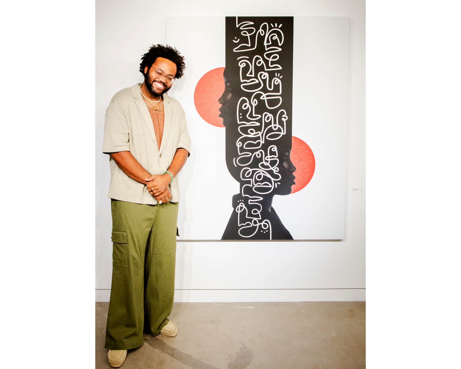 He names Keith Haring, Jean-Michel Basquiat, and Amy Sherald as artists who have influenced his creativity. Locating himself in the evergreen debate of what constitutes “Black art,” Horton is resolute that he always intends for his art to be legible as Black art. Using exclusively Black figures and references to cultural elements that are distinctly Black, he achieves just that.