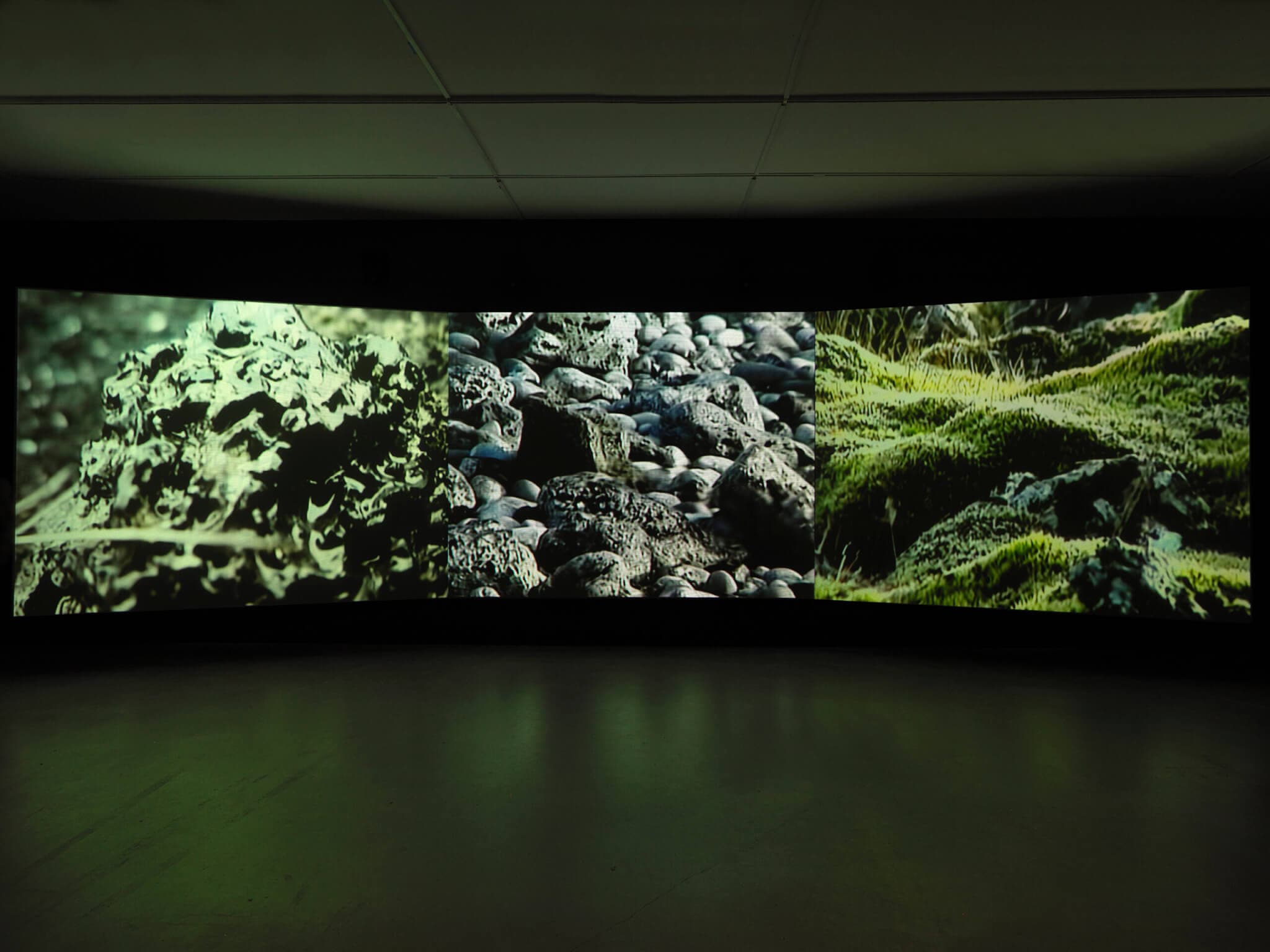 Steina, Lava and Moss, 2000. “Steina: Playback,” installation view, MIT List Visual Arts Center through January 12, 2025. Photo by Dario Lasagni. Courtesy of MIT List Visual Arts Center.