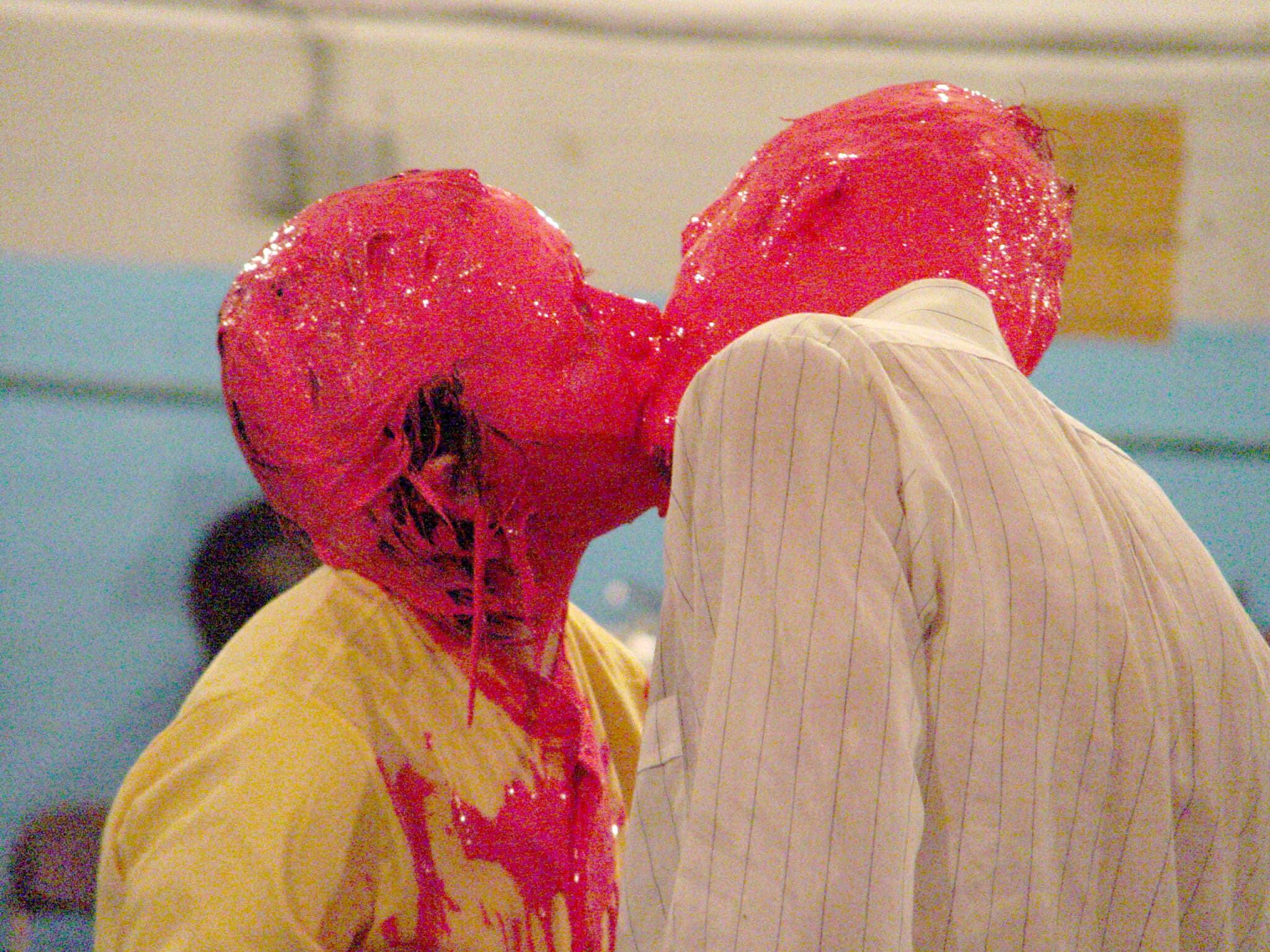 Julie Andrée T. and Dominic Gagnon, “Silent Logistics” at Corporeal Heat Performance Festival, former D4 Police Station, South End, Boston, created and curated by students at the School of the Museum of Fine Arts working under Jamie McMurry in the performance area, 2004. Photo by Bob Raymond (Mobius Artists Group). Courtesy of Mobius Artists Group and Tufts University Art Galleries.