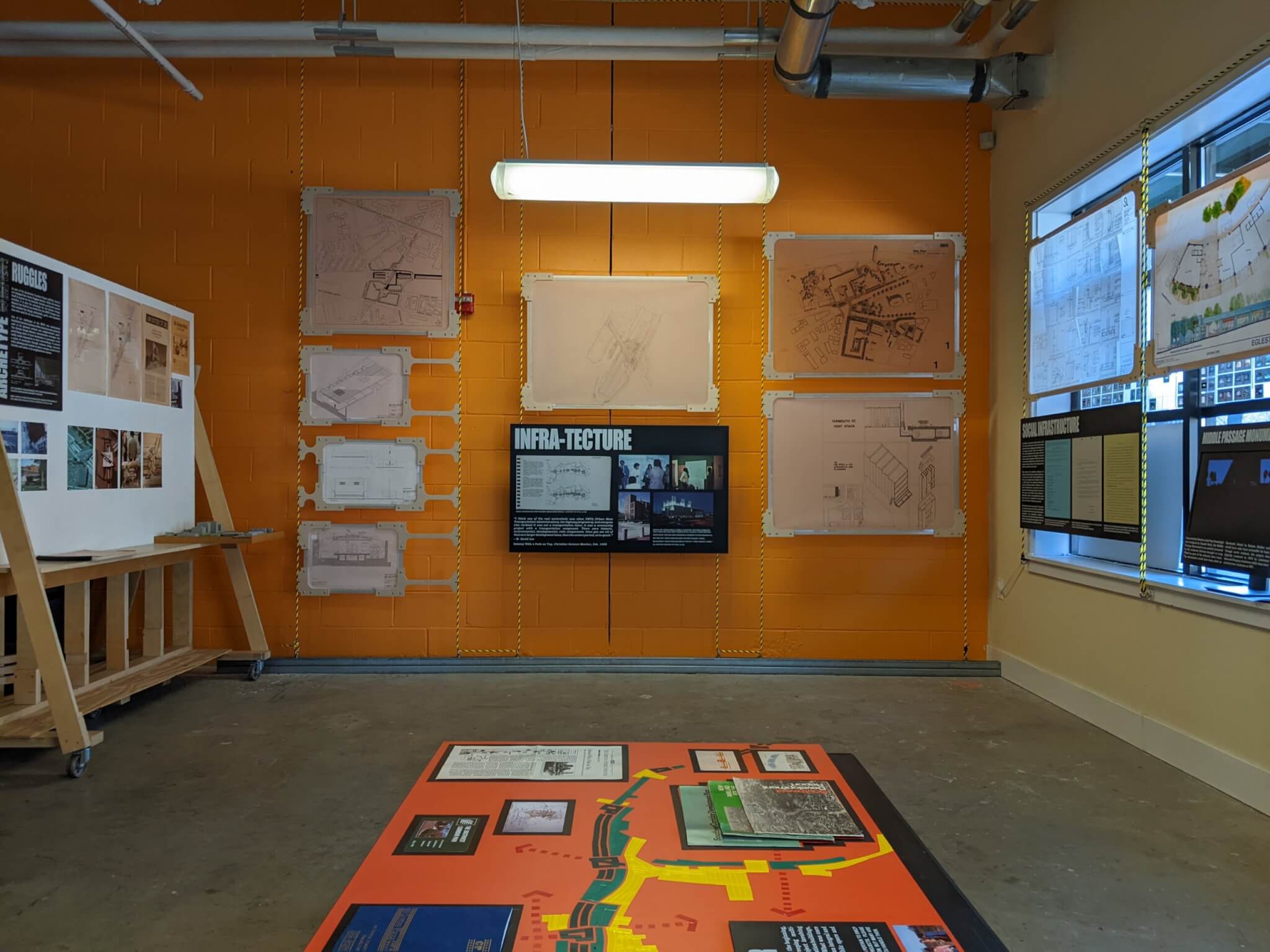 Installation view, “Stull & Lee: Black Architecture Vision for an Infrastructural City,” YouthBuild Boston’s Designery, Roxbury, 2024. Courtesy of Gabriel Cira.